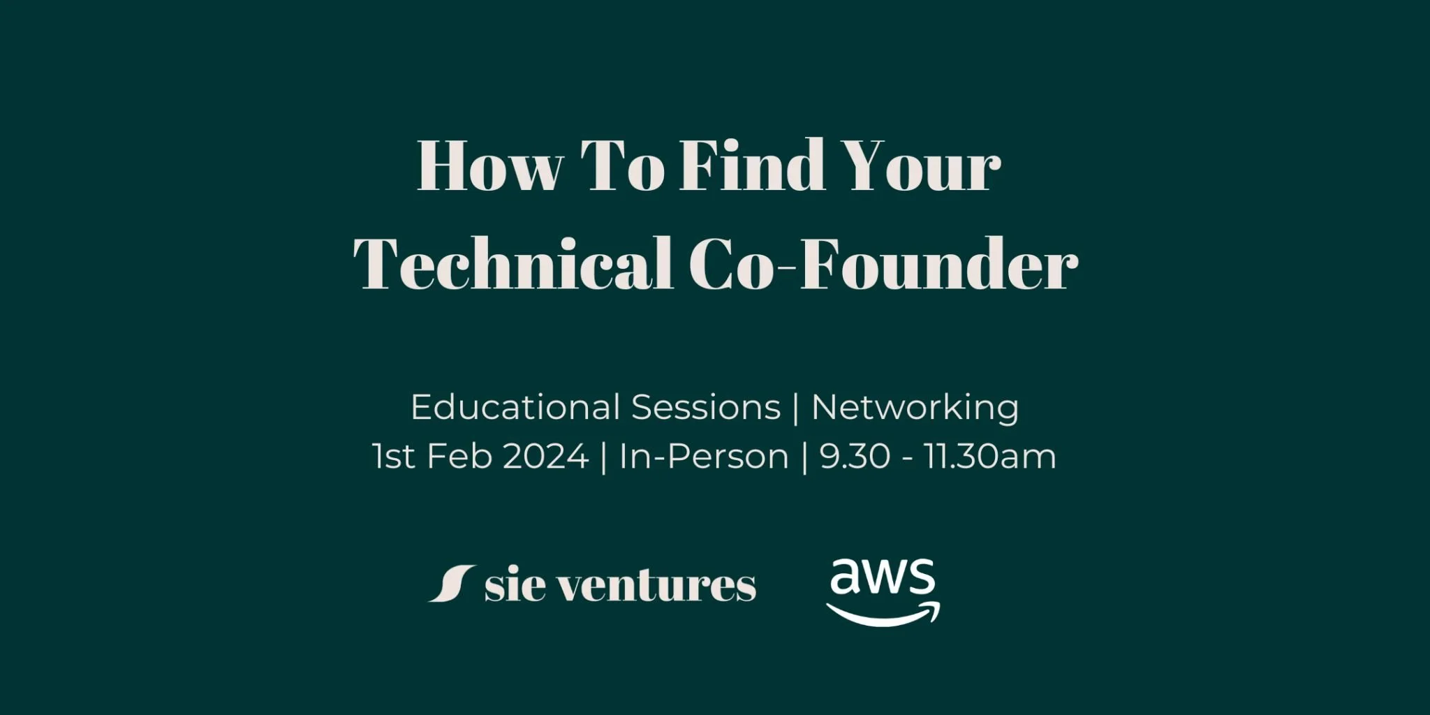 Are you a non-technical founder looking for your technical co-founder? Join AWS and Sie Ventures for an educational morning, discussing the common pitfalls and mistakes encountered by founders on the search and why a technical co-founder can be the difference between receiving venture capital or not.